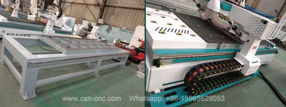 Поддържа автоматично зареждане и разтоварване на материал. Направената дървена врата и режимът на шкафа могат да се променят автоматично. След като подредите дъската, щракнете върху менюто, машината ще работи.