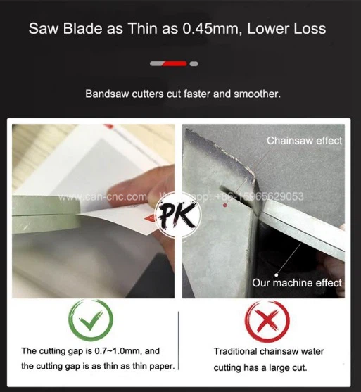Режещият диск е тънък като 0.45 mm, по-ниски загуби: лентовите триони режат по-бързо и по-гладко.